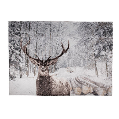Plaid 130x170 cm mit Bruin Polyester Hert Deken. Een Mooi Decoratieve Plaid, Houdt Je Lekker Warm Tijdens de Koude Winteravonden. Mooie Rechthoekige Plaid van Polyester, traf de Afbeelding van Een Hert in de Sneeuw in Een Landelijke Stijl. Leuk om te Geven Als Kerstcadeau.