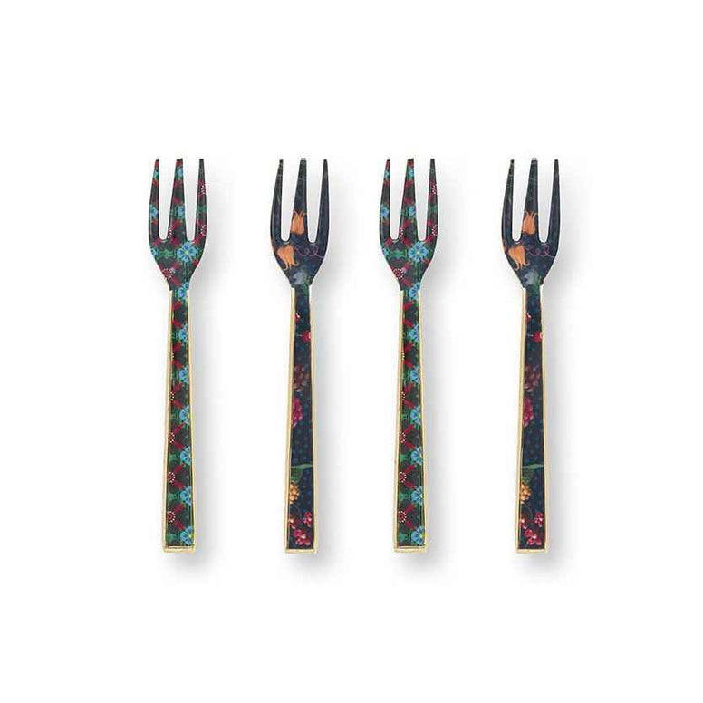Stellen Sie sich Folgendes vor: Es ist ein frischer Winterabend und Sie stellen sich wundervolle Zusammenkünfte mit Ihren Lieben bei köstlichen Desserts vor. Entdecken Sie Pips Berry Blues-Kollektion, die sorgfältig für solche Anlässe entworfen wurde. Jede Gabel verfügt über ein bezauberndes dunkelblaues Blumenmuster, akzentuiert durch komplizierte Zweige anmutiger Fantasieblumen und Beeren, die an die bezaubernde Schönheit des Winters erinnern.