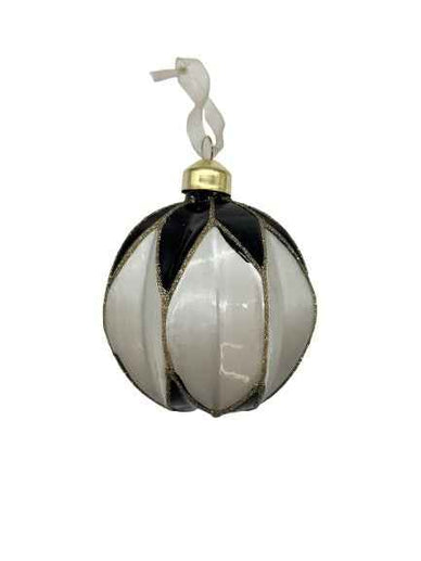 Weihnachtskugel aus Glas schwarz/weiß/gold (Rund)